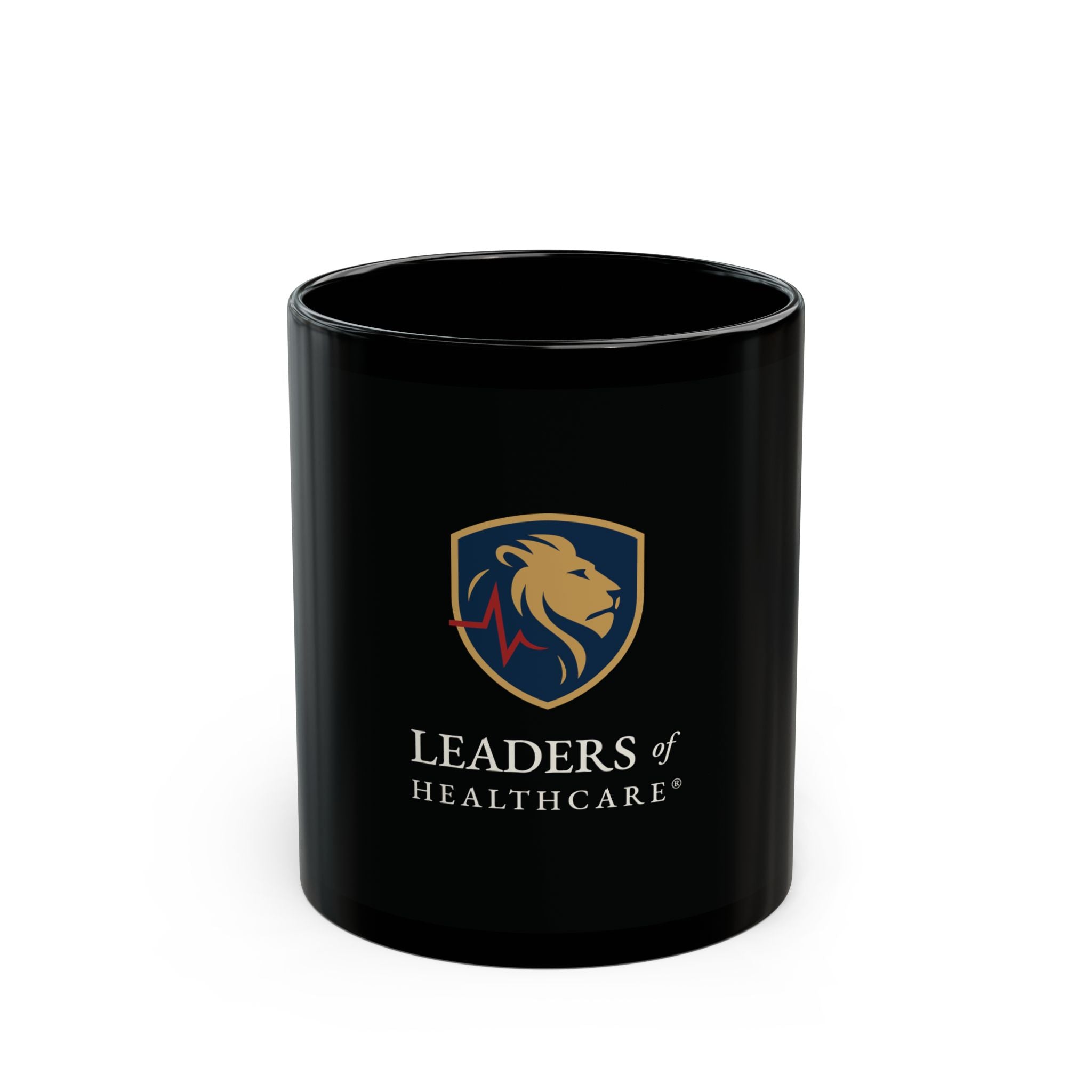 Leaders of Healthcare Black Coffee Mug — Lion Crest Logo Ceramic 11oz/15oz